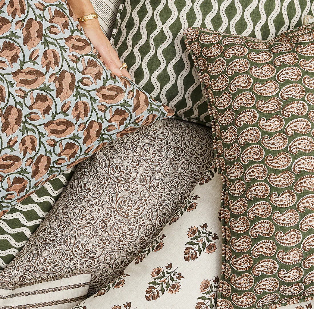 Cold machine wash separately on a delicate cycle with a very minimal amount of mild detergent. Do not tumble dry, soak or bleach. Iron at medium setting if necessary. For spot cleaning, gently dab the area with water (do not rub). Due to the nature of hand printed fabrics, variation in colour and pattern may occur. Keep out of direct sunlight to avoid excessive fading.