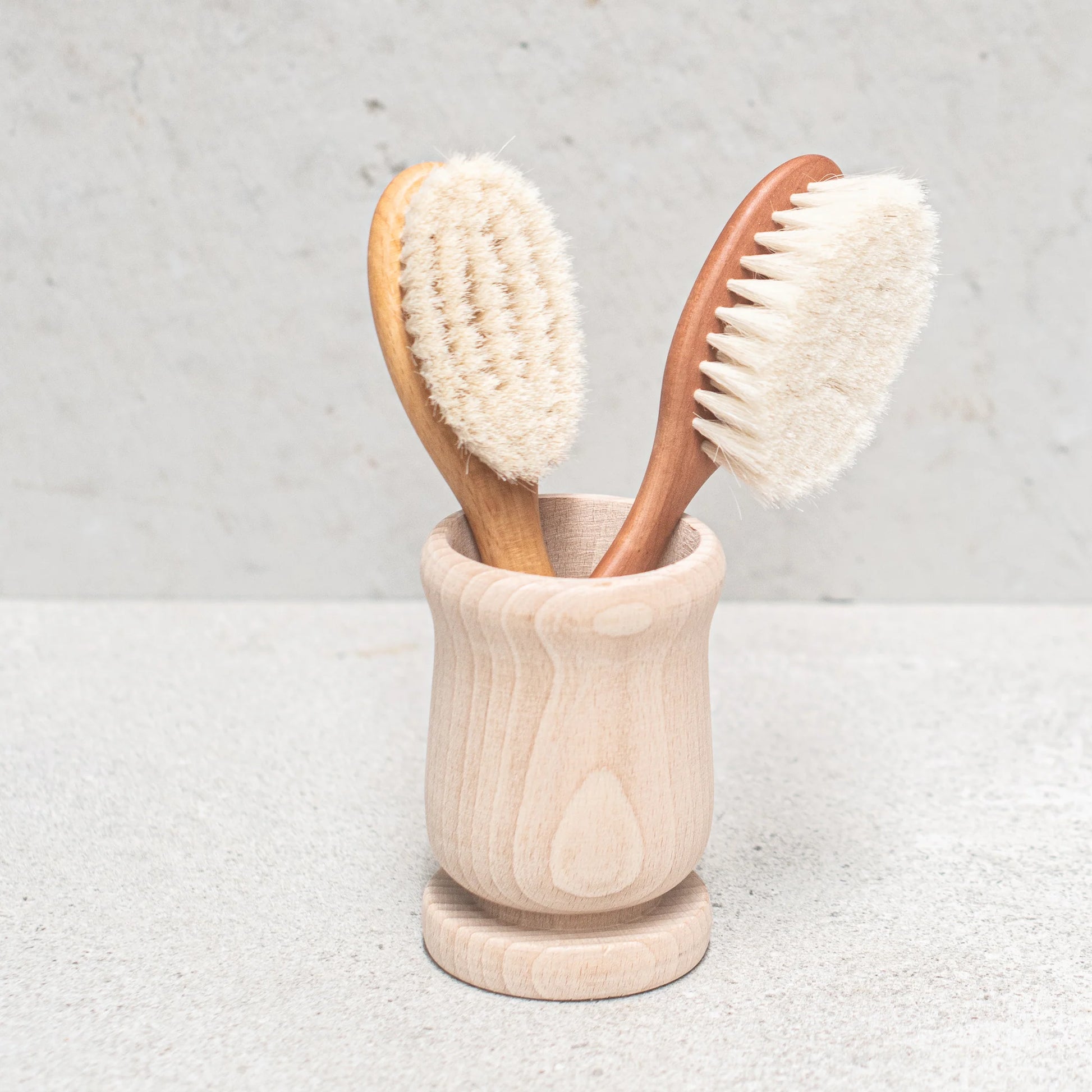 Each brush is meticulously handcrafted from FSC-certified oiled beechwood, ensuring a sustainable choice that is both stylish and eco-friendly. The brush features ultra-soft goat hair bristles that are perfect for babies. These gentle bristles glide through hair without tugging, making daily grooming a comfortable experience for your child. Regular brushing not only helps to detangle hair but also promotes a healthy scalp, making it a perfect addition to your baby’s daily routine. The natural wood finish and the elegant design make this brush a lovely accessory for any nursery or baby care kit.