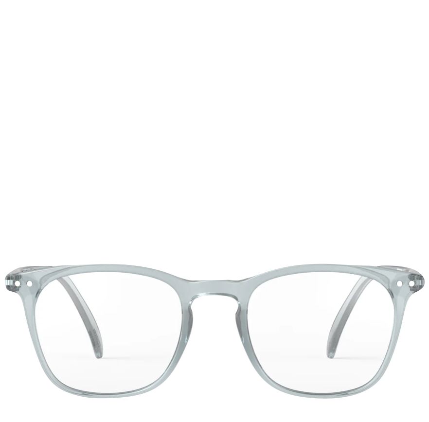 Colourful, lightweight limited-edition reading glasses from IZIPIZI. The E collection frames are a large, structured trapezium shape.