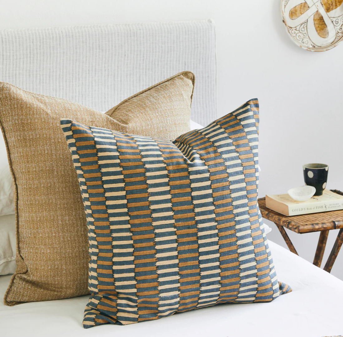 Khan celebrates the graphic beauty of traditional tribal textiles with bold geometric patterns and strong linear elements. This design brings visual impact through its confident use of shape and repetition, creating dynamic rhythm. In the Desert colourway, warm sand and earth tones ground the pattern with natural sophistication, perfect for adding structured texture to contemporary spaces.