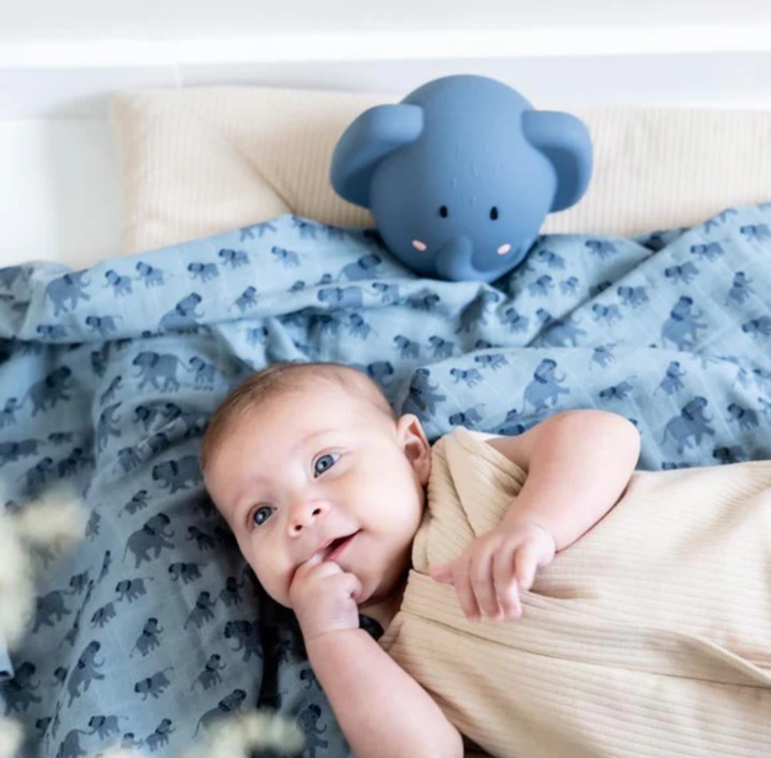 A soft silicone night light in the shape of Mrs. Elephant — squishy, warm and designed to keep little ones company after lights out. Rechargeable with multiple brightness settings, adjusted with a simple tap on the head.
