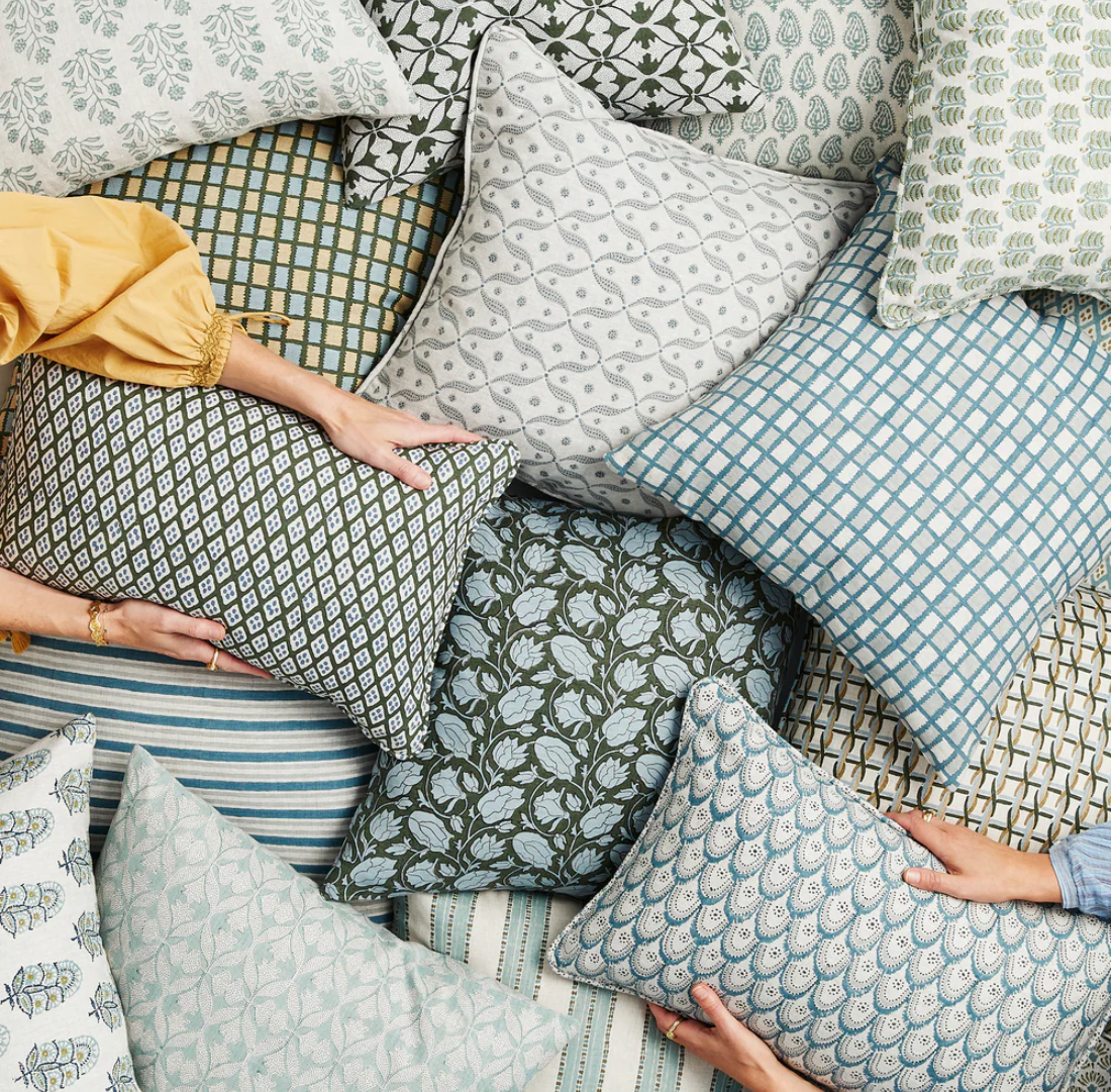 Cold machine wash separately on a delicate cycle with a very minimal amount of mild detergent. Do not tumble dry, soak or bleach. Iron at medium setting if necessary. For spot cleaning, gently dab the area with water (do not rub). Due to the nature of hand printed fabrics, variation in colour and pattern may occur. Keep out of direct sunlight to avoid excessive fading.
