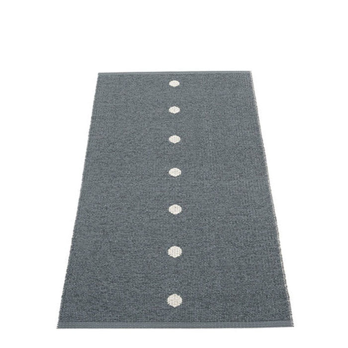 If you're a golf enthusiast, the name PEG will instantly resonate with you and you can visualize the pattern - imagine that perfect shot, pegging up your golf ball on a pristine green. Just like its sister design VERA, PEG features a row of circles, but in a smaller and more refined version. If you have cherished your VERA rug for the past decade and desire a fresh yet similar design, PEG is the perfect choice. It offers a timeless appeal with classic colors and a simple, elegant pattern that effortlessly complements any interior decor. Elevate your space with the refined elegance of PEG - a rug that captures the essence of timeless beauty, simplicity, and understated luxury. With this Pappelina design you will be showcasing your impeccable taste and appreciation for classic style. The rug has high UV resistance and can be used both indoors and outdoors. Pappelina plastic rug PEG Granit Fossil Grey
