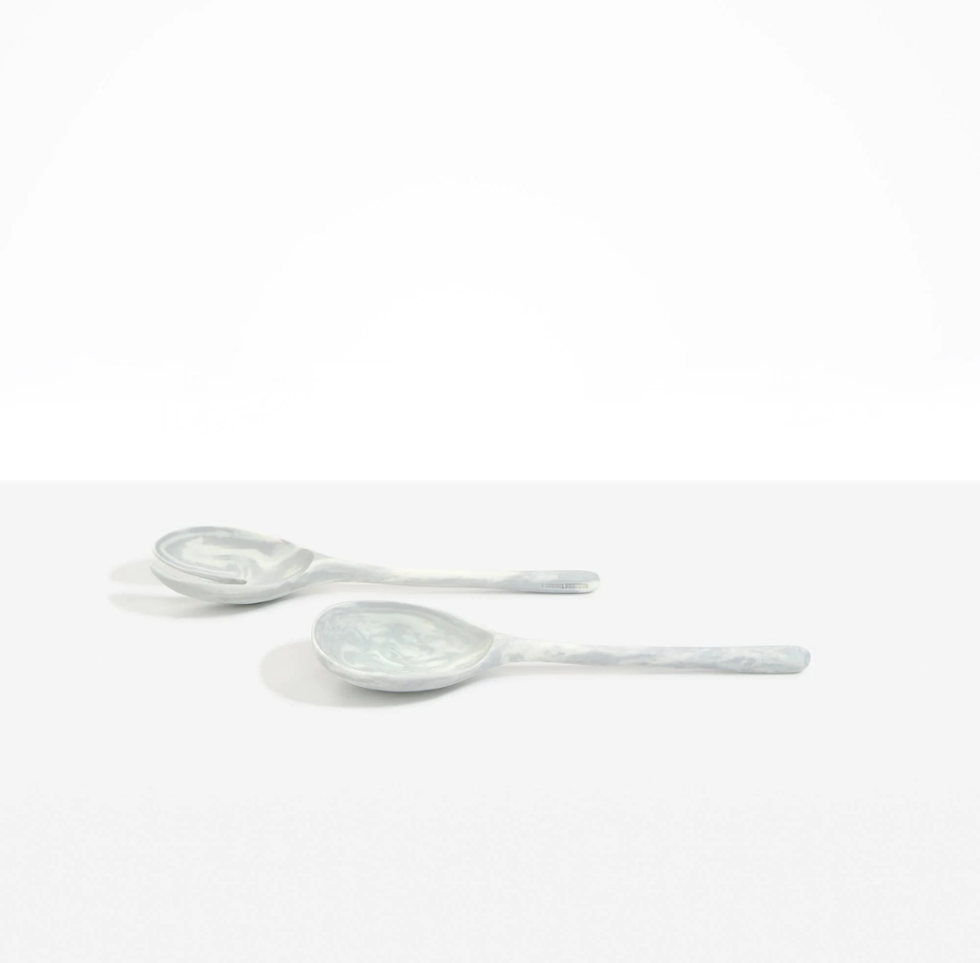 The Stone Servers feature elongated organic forms that pair beautifully with the studio's bowl collections. These sculptural serving utensils bring handcrafted elegance to every table setting.