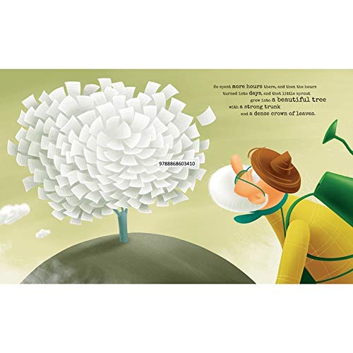 When he's finished, he plants the page, waters it and patiently waits for it to grow. In no time at all it blossoms into a thousand tales of fantastic creatures that will surprise and delight the reader.