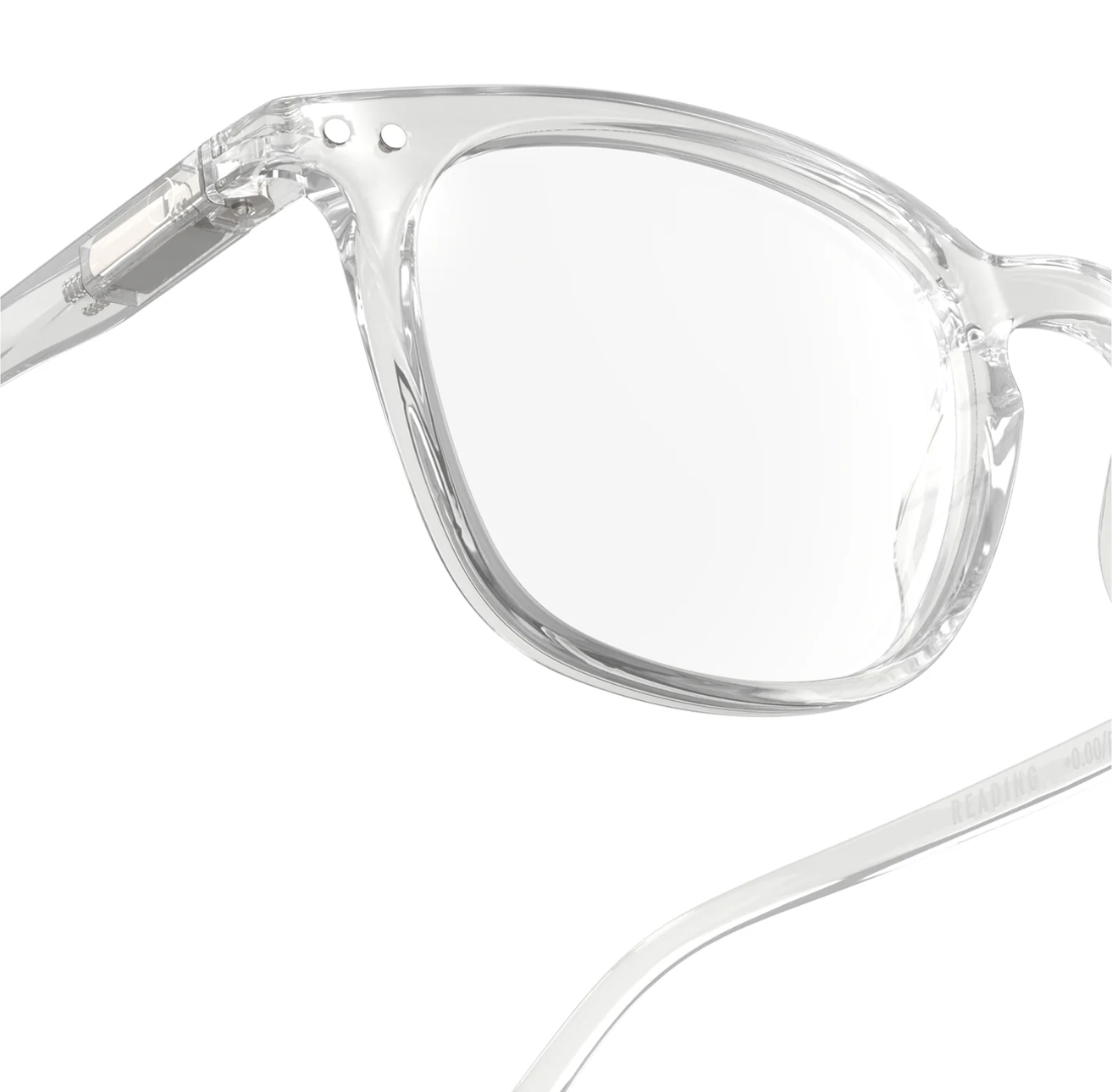 Colourful, lightweight limited-edition reading glasses from IZIPIZI. The E collection frames are a large, structured trapezium shape.